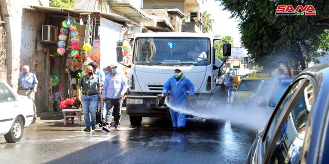 عضو المكتب التنفيذي في محافظة دمشق المحامي سمير الجزائري أكد استمرار المحافظة بتطبيق الإجراءات الاحترازية للتصدي لفيروس كورونا ولا سيما خلال فترة العطلة مشيرا إلى أن الحملة تتضمن أعمال التنظيف والتعقيم للشوارع الرئيسة والمداخل الفرعية بالتعاون مع المواطنين ولجان الأحياء.
