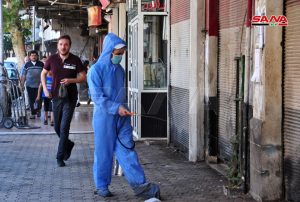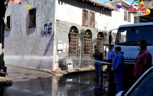 أطلقت محافظة دمشق اليوم حملة تعقيم وتنظيف مركزة تشمل جميع شوارع وأحياء المدينة بدأتها من ساحة باب مصلى ومنطقة الميدان بهدف تعزيز إجراءات التصدي لفيروس كورونا مع ازدياد عدد حالات الإصابة المسجلة.