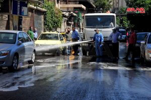 وعبر خمسة محاور توزعت مجموعات العمل مع الآليات والمضخات في منطقة الجزماتية حتى جسر المتحلق الجنوبي وفي منطقة جسر المتحلق وفي منطقة أبو حبل بشوارعها الفرعية على الطرفين وفي منطقة الفوال إضافة إلى منطقتي المجتهد وباب مصلى والشوارع المحيطة بهما وفق مدير النظافة في المحافظة المهندس عماد العلي الذي أشار في تصريح للصحفيين إلى أن الحملة التي أطلقتها المحافظة تشمل التعقيم والتنظيف والشطف وهي مركزة ومكثفة وستشمل جميع مناطق دمشق بالتوازي مع العمل اليومي الاعتيادي الذي تقوم به دائرة الخدمات من أعمال تنظيف وتعقيم لشوارع المدينة.