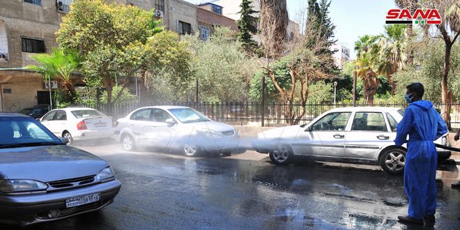 وكانت محافظة دمشق أطلقت أمس حملة تعقيم وتنظيف مركزة تشمل جميع شوارع وأحياء المدينة بدأتها من ساحة باب مصلى ومنطقة الميدان بهدف تعزيز إجراءات التصدي لفيروس كورونا مع ازدياد عدد حالات الإصابة المسجلة.