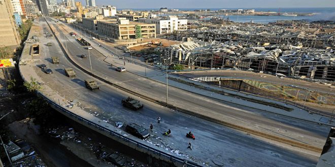 وتواصل الجهات المعنية في لبنان تحركاتها للملمة آثار الانفجار الضخم الذي هز مرفأ بيروت حيث قرر المجلس الأعلى للدفاع خلال اجتماعه الذي عقده الليلة الماضية برئاسة الرئيس اللبناني العماد ميشيل عون رفع توصيات إلى مجلس الوزراء بإعلان بيروت مدينة منكوبة وإعلان حالة الطوارئ فيها لمدة أسبوعين تتولى خلالها السلطة العسكرية العليا صلاحية المحافظة على الأمن وتوضع تحت تصرفها جميع القوى المسلحة بما فيها قوى الأمن الداخلي والأمن العام والجمارك ورجال القوى المسلحة في الموانئ والمطار وفي وحدات الحراسة المسلحة ومفارزها بمن فيها رجال الإطفاء وتقوم هذه القوى بواجباتها الأساسية وفقا لقوانينها الخاصة وتحت امرة القيادة العسكرية العليا.