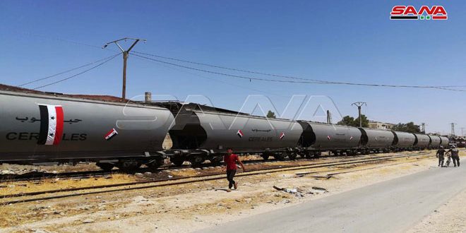 وكانت رحلة القطار انطلقت من مرفأ طرطوس صباح اليوم محملة بأول دفعة من القمح الطري بعد إعادة تأهيل مقاطع من السكك الحديدية التي تعرضت للتخريب والسرقة واعتداءات التنظيمات الإرهابية المسلحة.