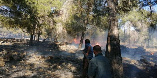 أخمد عناصر فوج إطفاء درعا ومديرية الزراعة بالتعاون مع الأهالي حريقاً كبيراً نشب أمس في الأشجار الحراجية بتل الجابية بريف المحافظة.