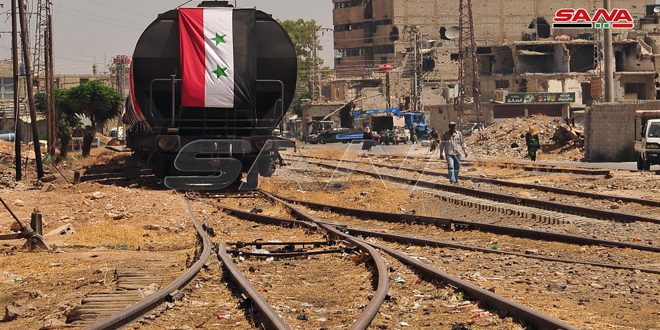 وصول أول قطار محمل بالحبوب من مرفأ طرطوس إلى صوامع السبينة بريف دمشق بعد انقطاع تسع سنوات