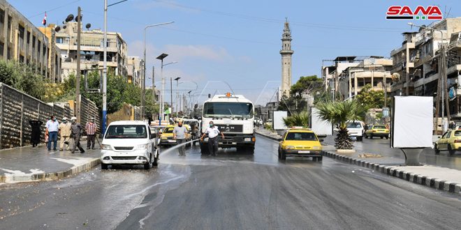 وفي الحسكة نفذت الشؤون الصحية في مجلس المدينة حملة لرش وتعقيم عدد من الشوارع الرئيسية والأسواق وأماكن التجمعات الرئيسية في المدينة.