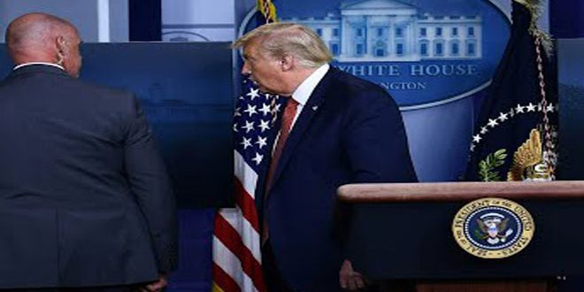 أفادت وسائل إعلام أمريكية أن الرئيس الأمريكي دونالد ترامب أجبر على قطع مؤتمره الصحفي في البيت الأبيض اليوم إثر إطلاق نار وقع خارج المجمع.