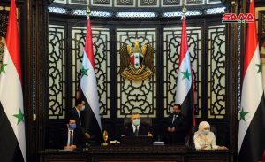 وكانت استؤنفت الجلسة الافتتاحية لمجلس الشعب في وقت سابق برئاسة أكبر الأعضاء سناً عبد الحميد أسعد الظاهر وبأداء أعضاء من المجلس القسم الدستوري افرادياً بعد أن أداها بالأمس أكثر من نصفهم.