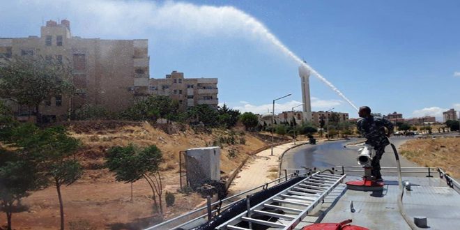 رئيس المجلس آصف هواش أكد في تصريح لمندوبة سانا أن الحملة بدأت بتعقيم جميع الأسواق التجارية بالضاحية والسكن الشبابي والمخبز الآلي ونقاط تجمع السرافيس والمطاعم لتعميق ثقافة النظافة لدى المواطنين والتشدد في تنفيذ شروط الوقاية احترازاً من الإصابة بفيروس كورونا.