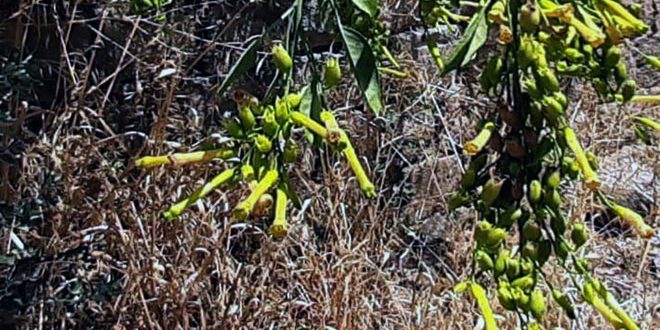 ولفتت العلي إلى أنه تتم مكافحة نبات التبغ السام بطرق علمية من خلال تكميم وقص النورات الزهرية وتجميعها في أكياس تمهيداً لحرقها منعاً من انتشار تلك البذور السامة ثم القيام برش الشجيرات المنتشرة بمبيد أعشاب جهازي “غلايفوسيد” للقضاء على هذه النبتة ومنع انتشارها.