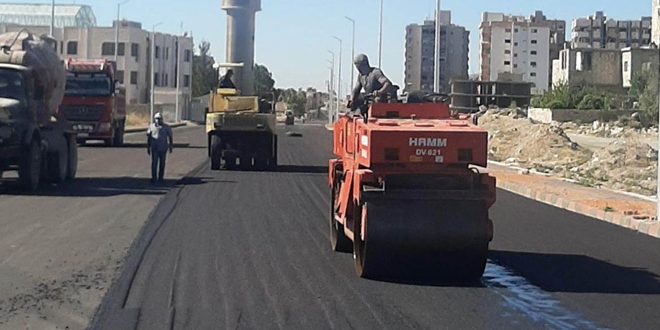 وقامت الورشات بأعمال التزفيت للطريق بدءاً من تقاطع الشرطة العسكرية وحتى مشفى تشرين بطول نحو 1200 متر وعرض متفاوت حتى 20 متراً ومساحة احتاجت 26 ألف طن من الأسفلت وفق مدير الإشراف في المحافظة المهندس حسن طرابلسي مبينا أنه تمت إعادة فتح الطريق بشكل كامل بعد قطعه لأربعة أيام خلال أعمال التزفيت.