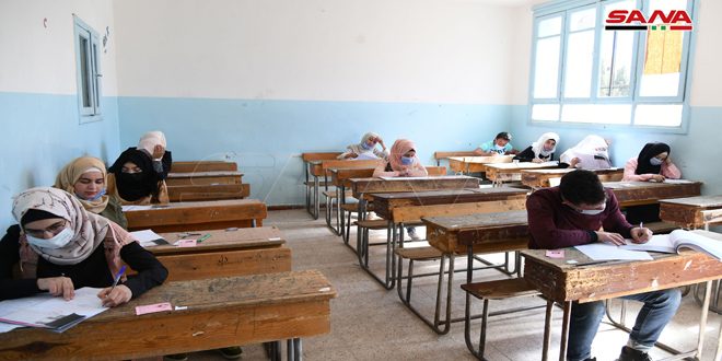 إجراءات صحية اتخذتها مديرية تربية ريف دمشق من خلال الالتزام بالإجراءات الاحترازية للتصدي لفيروس كورونا من التعقيم اليومي والتباعد المكاني ومراعاة التدابير اللازمة لضمان سير العملية الامتحانية في 8 مراكز امتحانية يتقدم فيها 600 تلميذ وتلميذة وفق مدير تربية ريف دمشق ماهر فرج.