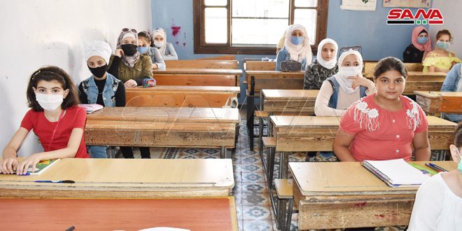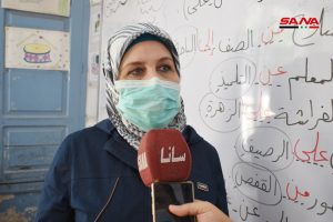 كاميرا سانا جالت في المركز التعليمي بمدرسة الملكة بلقيس في حي سيف الدولة المحرر من الإرهاب واطلعت على واقع التعليم فيها والإجراءات الاحترازية المتخذة ضد فيروس كورونا حيث أوضح الدكتور يحيى العتر رئيس دائرة الصحة المدرسية بحلب أنه في جميع المراكز المفتتحة تم تعقيم الغرف الصفية وتوزيع الكمامات على الطلبة وتقديم حصص صفية خلال زيارة الفرق الجوالة للمراكز لشرح كيفية الوقاية من المرض وغسل الأيدي بالماء والصابون بشكل مستمر.