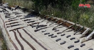 عثرت وحدات من الجيش العربي السوري خلال تمشيطها الأراضي الزراعية التي حررها الجيش العربي السوري من الإرهاب بريف سلمية على كميات كبيرة من الأسلحة والذخائر من مخلفات الإرهابيين بريف حماة.