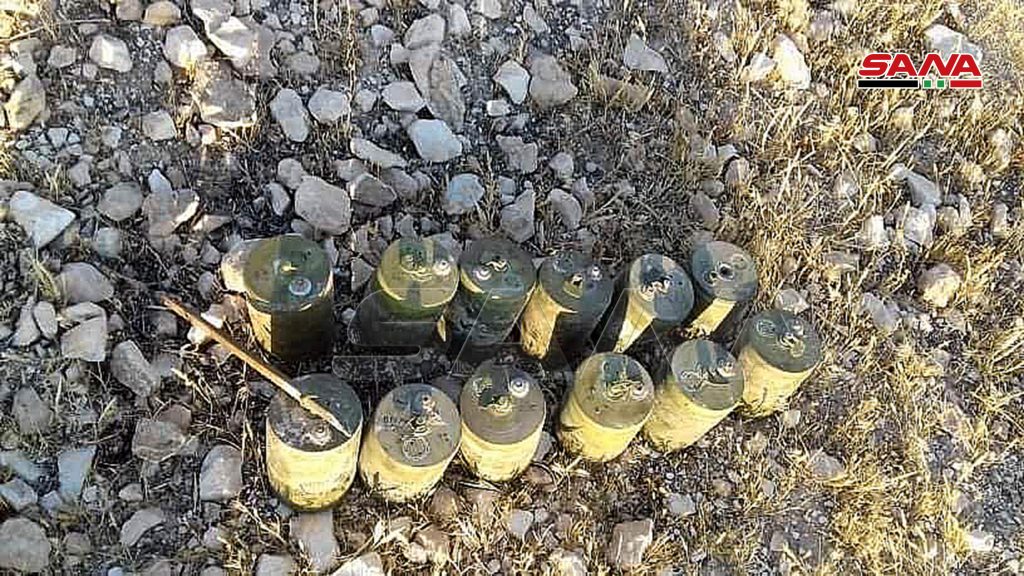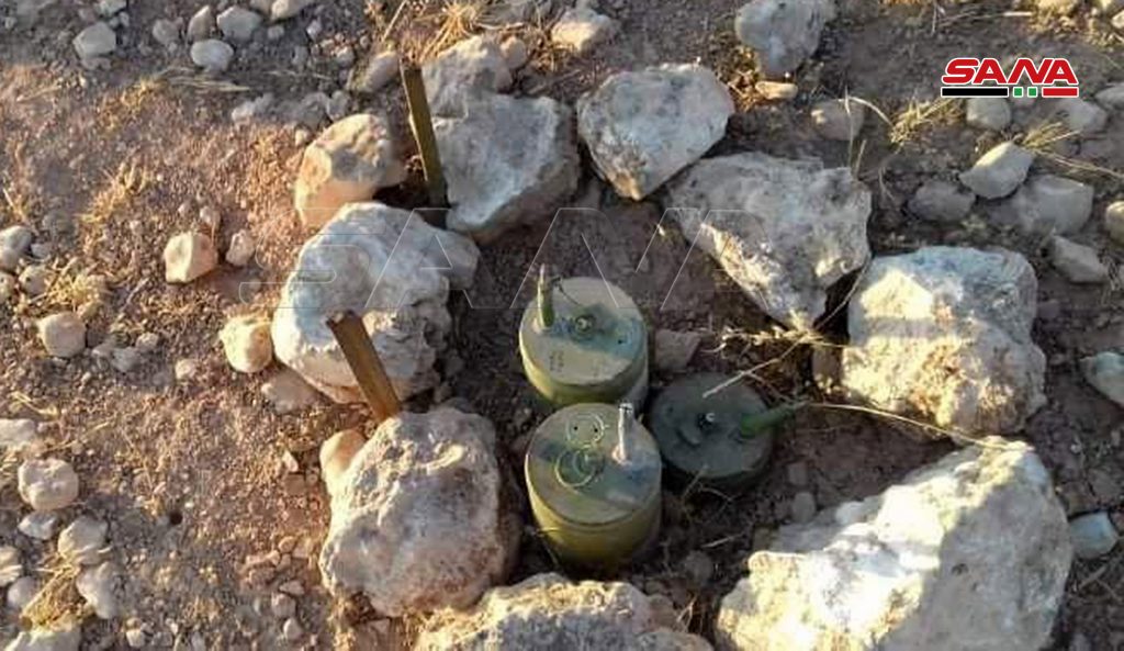 وذكر مراسل سانا أن فرق الهندسة التابعة لوحدات الجيش عثرت على كميات من العبوات الناسفة بأشكال وأحجام مختلفة خلال عمليات تمشيط الأراضي الزراعية في قرى السطحيات وقبة الكردي والحنيطة وفريتان بريف السلمية.