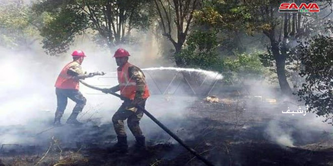 أخمد عناصر فوج إطفاء حمص اليوم حريقاً نشب بأعشاب وأشجار حراجية على طريق حمص دمشق بمنطقة تحويلة الكونفاي.