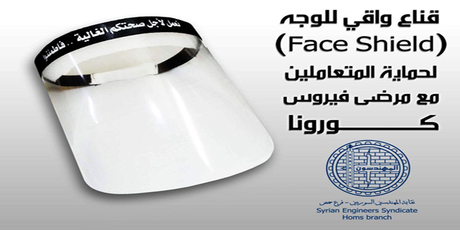 أطلق فرع نقابة المهندسين في حمص مبادرة تهدف إلى المساهمة بالتصدي لفيروس كورونا من خلال تصنيع معدات وقائية بخبرات محلية تم تسليمها لعدد من الجهات الصحية.