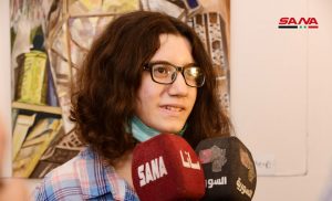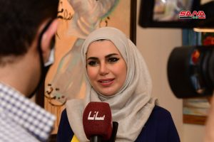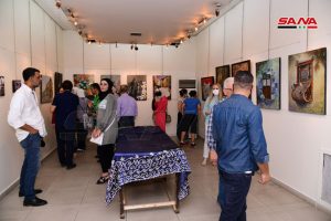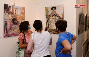 وقدمت الفنانة حنان إبراهيم لوحتين جسدت الأولى بائع العرقسوس والثانية من أحد البيوت الدمشقية القديمة مبينة أن المعرض فرصة للتواصل مع الجمهور وتطوير تجارب المشاركين.