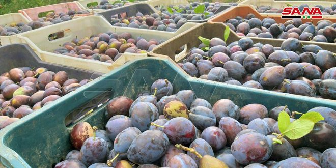 يواصل مزارعو حمص جني محاصيلهم الزراعية للموسم الحالي ومن ضمنها محصول (الخوخ) الذي تشتهر به قرى الريف الغربي بالمحافظة.