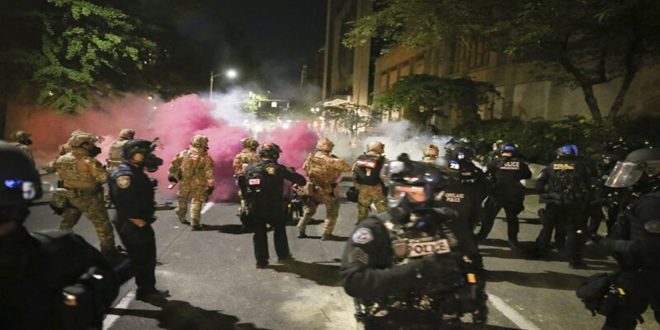ونقلت رويترز عن مكتب مأمور شرطة مقاطعة مولتنوماه قوله على تويتر اليوم إن شرطة بورتلاند أعلنت أن مشاركين في تجمع قريب من مبنى حكومة مولتنوماه “يثيرون الشغب بعدما قاموا بعمليات تخريب متكررة وهشموا نوافذ الطابق الأرضي بالحجارة وألقوا مواد حارقة على أحد المكاتب”.