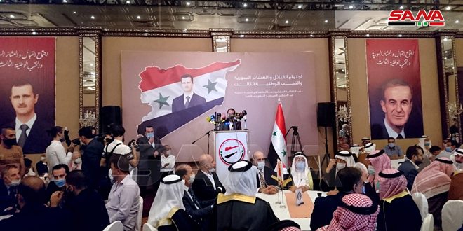 ولفت محافظ حلب حسين دياب إلى دور القبائل والعشائر العربية في التصدي للمحتل وافشال مخططاته في الجزيرة السورية مؤكداً أن اجتماع اليوم هو لرفض الاحتلال للأرض السورية مع التمسك بالهوية والعلم العربي السوري والوقوف مع أبطال الجيش العربي السوري في الانتصارات التي يحققونها لطرد المحتل عن تراب الوطن.