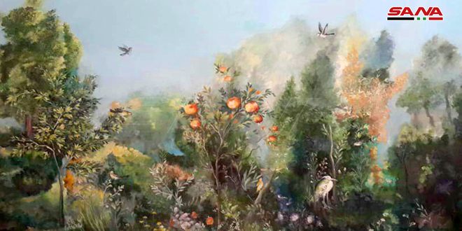 حمص-سانا تجمع الفنانة التشكيلية رشا شمه بين الرسم والأعمال اليدوية في صورة تتماهى مع الطبيعة …