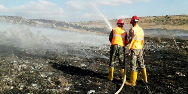 وأوضح العقيد عثمان جودا قائد فوج إطفاء حمص في تصريح لمراسل سانا أن عناصر الفوج بالتعاون مع عناصر إطفاء الدفاع المدني ومديرية الزراعة أخمدوا اليوم حريقاً طال أشجار تفاح وأشجاراً حراجية في قرية مقلس بمنطقة ضهر القصير بريف حمص الغربي مشيراً إلى أن المساحة المحروقة تبلغ نحو مئة وخمسين دونماً.