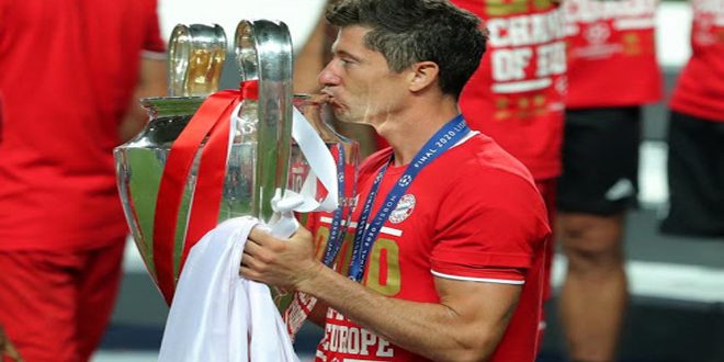 وسجل ليفاندوفسكي في 10 مباريات خاضها خلال النسخة الحالية من البطولة ولم يكتف بهذا فقط بل سبق له التتويج أيضاً بلقب هداف الدوري الألماني الذي حسمه فريقه إثر تسجيله 34 هدفاً.