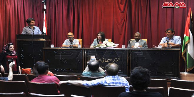 وأخذت الندوة شكل الحوار حيث طرح منصور مع النقاد أحمد هلال وعمر جمعة والقاص رسلان عودة نقاشا أدبيا نقديا حول العنوان وعتباته ودلالته والحدث والشخصيات وغيرها من المحاور.