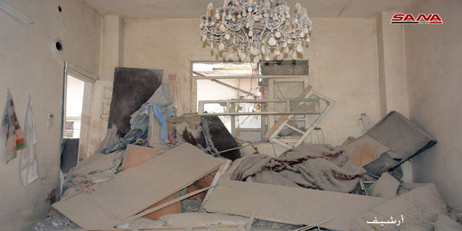 وذكر مصدر في شرطة حماة في تصريح لمراسل سانا أن المجموعات الإرهابية المنتشرة في ريف إدلب الجنوبي اعتدت بالقذائف الصاروخية على منازل الأهالي في بلدة جورين وقرية البركة في منطقة الغاب بالريف الشمالي الغربي ما تسبب بإصابة مدني بجروح.