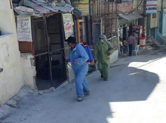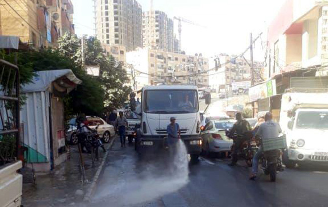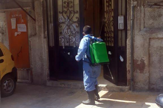 نفذت ورشات محافظة دمشق اليوم أعمال تنظيف وتعقيم لحي البختيار في البرامكة وفق البرنامج المحدد الذي تعمل عليه يومياً ضمن الحملة التي بدأتها في الثالث من الشهر الجاري وتشمل جميع شوارع وأحياء المدينة بهدف تعزيز إجراءات التصدي لفيروس كورونا.