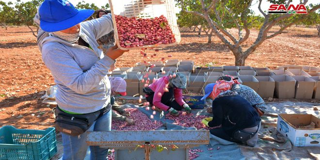 2020-08-28حمص-ساناتستمر الأيادي الطيبة بجني مواسم الخير في حمص وتقديرات بإنتاج 870 طناً من الفستق الحلبي في المحافظة.وتتركز زراعة الفستق الحلبي في محافظتي إدلب وحماة. تصوير: نقولا الخوري الفستق الحلبي 2020-08-28admin