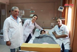 الدكتورة بلسم ميهوب اختصاصية أطفال ومتعمقة بمجال أمراض الدم وزرع النقي عند الأطفال من إيطاليا قالت: “الطفل مشخص طبياً بفقر دم لا مصنع ومعتمد على نقل مشتقات الدم بشكل دوري للصفيحات والكريات الحمر وجميع خلايا الدم لديه ناقصة وكانت الحالة شديدة ومجرب معها العلاج بمثبطات المناعة دون استجابة فهو استطباب يتطلب زرع النقي في حال وجود شقيق مطابق” مضيفة: “تم قبول الطفل بقسم الزرع ضمن غرفة خاصة مفلترة وإجراءات عزل كاملة مع الأدوية حيث كانت البداية مع أدوية وقائية وتم تغيير العلاج حسب تطور الحالة والاختلاطات التي يمكن أن تحدث أثناء الزرع” واصفة إياها بأنها كانت مرحلة شديدة الخطورة وتتطلب مراقبة لصيقة ومبينة أن ما عانى منه الطفل بعد الزرع تمثل فقط بإنتان فطري وحمى بقيت لسبعة أيام تم التعامل معهما حسب البروتوكولات الطبية.