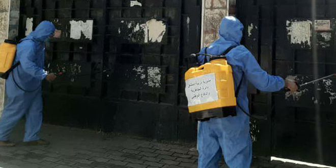في إطار استكمال الاستعدادات للعام الدراسي الجديد بدأت مديرية تربية دمشق حملة تعقيم وتنظيف لمدارسها شملت اليوم مدرستي عبدالرحمن الخازن وآية حبيب في البرامكة بدمشق وذلك في إطار الإجراءات الاحترازية للتصدي لوباء كورونا.