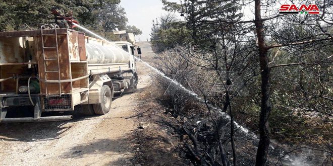إخماد حريق ضخم في منطقة عين الكروم بريف حماة الغربي