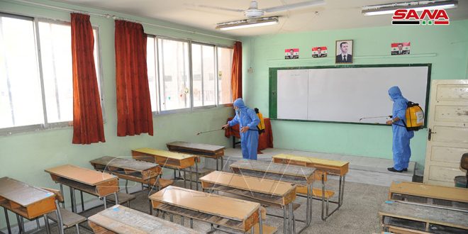 وكانت مديرية تربية دمشق بدأت أمس حملة تعقيم وتنظيف تستهدف جميع مدارس المحافظة وذلك قبيل بدء العام الدراسي الجديد.
