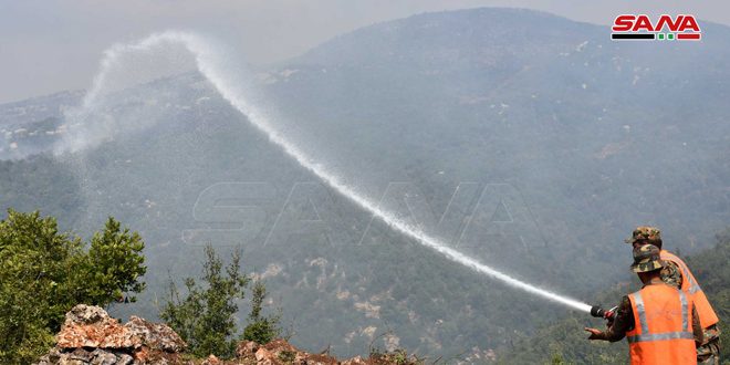 واندلع الحريق أمس الأول على الحدود الإدارية لحمص وحماة وطرطوس وطال أشجارا حراجية معمرة في منطقة جغرافية وعرة.