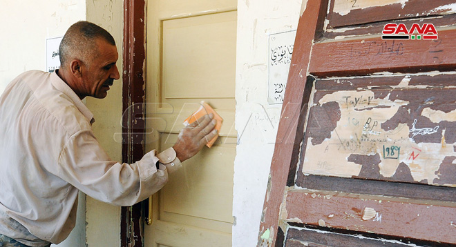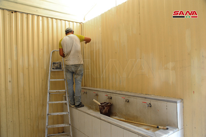 في إطار استكمال الاستعدادات للعام الدراسي الجديد تتابع مديرية تربية دمشق تنفيذ خطتها بإصلاح وتأهيل وصيانة المدارس لتكون جاهزة لاستقبال الطلاب مع انطلاق العام الدراسي الجديد حيث تم اليوم تأهيل وصيانة ثانوية نذير نبعة للمتفوقين في المزة.