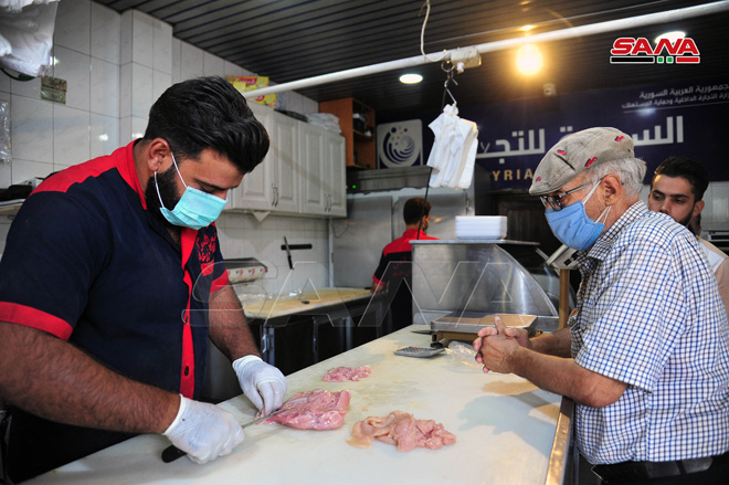 كل صالة تطلب الكمية التي تحتاجها من لحم العجل أو الفروج قبل يوم لتأتي طازجة عند الثامنة والنصف صباحا من اليوم التالي وفق تصريح مدير صالة المزرعة باسل البعلي لـ سانا مبينا أن الكميات المطلوبة تكفي لآخر أوقات الدوام.