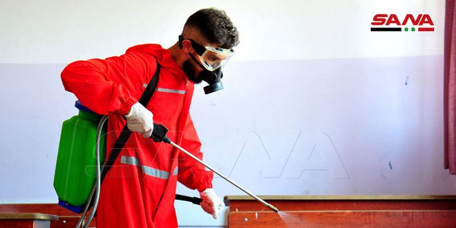 تتواصل حملة تنظيف وتعقيم مدارس ريف دمشق استعداداً لبدء العام الدراسي الجديد لتأمين بيئة صحية آمنة ونظيفة للطلاب في إطار الإجراءات الاحترازية المتخذة للتصدي لوباء كورونا.