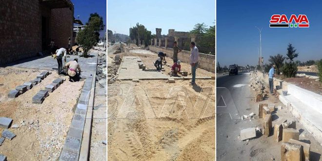 وأوضح أن أعمال تزفيت الشوارع في منطقة المنشية وخلف جامع العبارة مستمرة ضمن مشروع تزفيت الشوارع المحيطة بمنطقة العبارة بقيمة 24 مليون ليرة وتعهدته الشركة العامة للطرق والجسور إلى جانب الاستمرار بمشروع إعادة تأهيل الشارع من دوار شيحان في الجزء الغربي من المدينة إلى دوار الليرمون والمتضمن أعمال تركيب بلاط أرصفة ورديف ومد قميص زفتي بقيمة نحو 150 مليون ليرة وتعهدته مؤسسة تنفيذ الإنشاءات العسكرية بإشراف مديرية خدمات السريان.