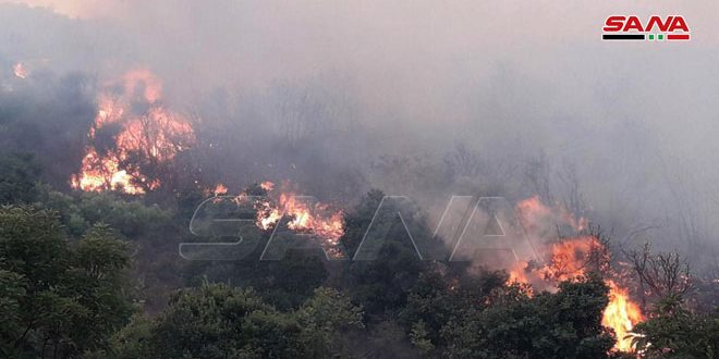 وكان الحريق اندلع بعد ظهر أمس في الأحراج المحيطة ببلدة بيرة الجرد بريف حماة الغربي حيث تجاهد فرق الإطفاء منذ ذلك الوقت لتطويق الحريق ومنعه من التمدد.