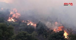 وكان الحريق اندلع بعد ظهر أمس في الأحراج المحيطة ببلدة بيرة الجرد بريف حماة الغربي حيث تجاهد فرق الإطفاء منذ ذلك الوقت لتطويق الحريق ومنعه من التمدد.