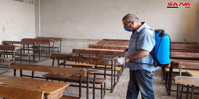 تمهيداً لانطلاق العام الدراسي الجديد بدأت مديرية التربية في حمص بالتعاون مع مجلس المدينة حملة تعقيم شاملة لمدارس المحافظة والمؤسسات التربوية والتعليمية تستمر لأسبوع في إطار التصدي لفيروس كورونا.