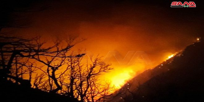 وفي وقت لاحق أفاد مراسل سانا بأن النيران ما زالت تلتهم غابة محمية الشوح بمنطقة صلنفة بسبب تقلب اتجاه الرياح بالرغم من الجهود الكبيرة لفرق الإطفاء .