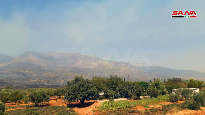 وأوضح المهندس أوفى وسوف مدير الهيئة العامة لإدارة وتطوير الغاب في تصريح لمراسل سانا اليوم أن الحريق نشب بداية في غابات صلنفة بمحافظة اللاذقية وامتد بسبب تقلب وشدة الرياح إلى الجهة الشرقية بالقرب من طريق عين جورين وما تزال طواقم وآليات اطفاء الهيئة والدفاع المدني بمؤازرة آليات وكوادر إطفاء من محافظة اللاذقية تعمل جاهدة للسيطرة على النيران وقطع خطوطها منذ أمس غير أن وعورة تضاريس المنطقة وشدة انحدارها والإمكانيات المحدودة وارتفاع حرارة الطقس جميعها عوامل تصعب وتؤخر من إخماد النيران التي زحفت إلى عدد من منازل أهالي قرية الفريكة ما ألحق خسائر مادية في منازلهم و ممتلكاتهم من الثروة الحيوانية والأشجار المثمرة.