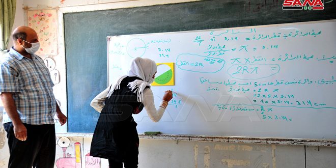 وفي مدرستي الكسوة المختلطة ومعضمية الشام الثالثة بريف دمشق رصدت سانا سير العملية التعليمية حسب الخطة التدريسية التي وضعتها وزارة التربية لتعويض الفاقد التعليمي لطلاب منهاج الفئة ب والذي حصل نتيجة لتعليق الدوام في المدارس خلال فترة تنفيذ الإجراءات الاحترازية للتصدي لفيروس كورونا.