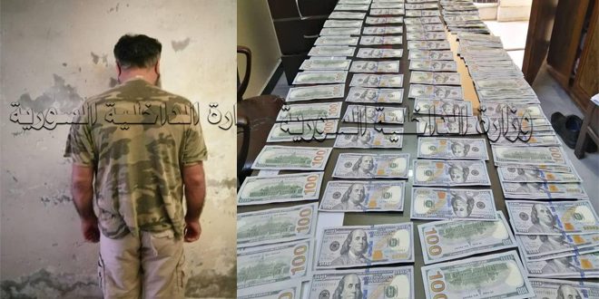 ووفقاً لبيان من وزارة الداخلية تلقت سانا نسخة منه فإن عناصر الفرع تمكنوا من إلقاء القبض على المروج خلال قيامهم بمهامهم الاعتيادية في محلة الزبلطاني وهو يقوم بترويج مبلغ 12 ألفاً ومئتي دولار أمريكي مزور مضيفاً أنه وبالتحقيق معه اعترف بحيازته العملة الأجنبية المزورة وبوجود مبلغ آخر من الدولار الأمريكي المزور في منزله بضاحية قدسيا وبتحري منزله عثر فيه على مبلغ 5 آلاف ومئتي دولار مزور.
