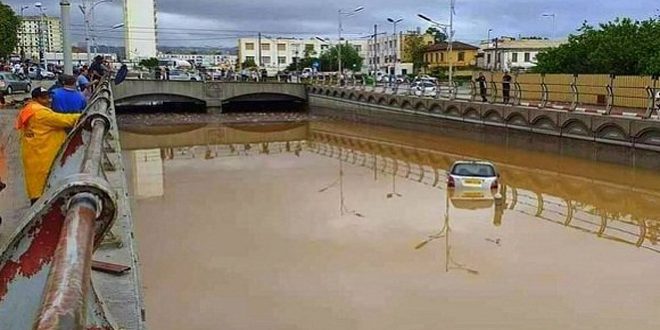 وذكرت وكالة الأنباء الجزائرية “واج” أن الأمطار الغزيرة تسببت في ازدحامات بشبكة الطرقات الرئيسية ووقوع حوادث وخسائر مادية لم تعلن السلطات المحلية حصيلتها حتى الآن.
