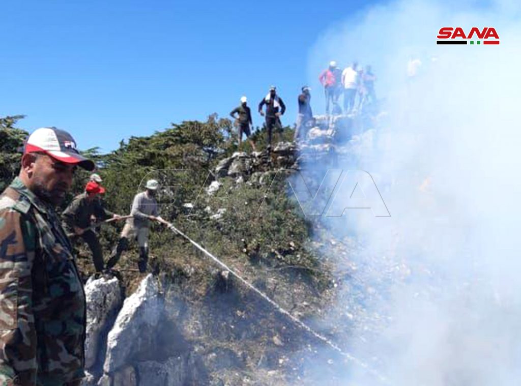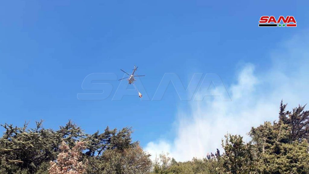 وأفاد مراسل سانا بأن حوامات الجيش العربي السوري بمؤازرة من طائرة إيرانية ضخمة دعمت جهود فرق الإطفاء والدفاع المدني التي استطاعت السيطرة على معظم الحريق في منطقة شطحة بعد مجابهة النيران في مناطق جبلية وعرة للغاية وكذلك الأمر بالنسبة لحريق الحراج الواقعه بين الحيلونة واللقبة.