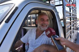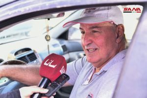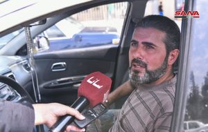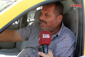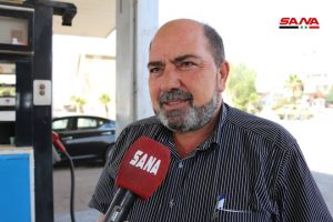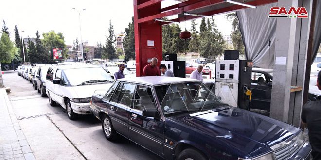 في محطة وقود الجلاء بدمشق يصف رياض قولاني لمندوبة سانا معاناته بالحصول على مادة البنزين معرباً عن أمله بأن تجد الجهات المعنية حلاً سريعاً لهذه الأزمة المتجددة والمتزامنة مع تشديد الحصار الأمريكي على سورية.